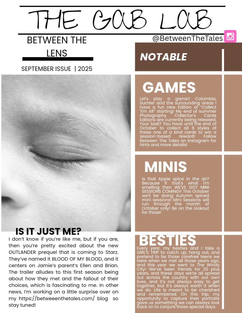 THE GAB LAB is the place to find some notable things going on with Between The Tales Photography and some personal thoughts from your favorite Photographer! If you want to keep up with new things going on aside from checking here you can follow @BetweenTheTales on IG and check out https://betweenthetalesphotography.mypixieset.com/ to work with Between The Tales!
